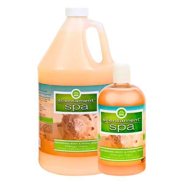 Scentament Spa Mango Maui Body & Facial Gallon is a professional-grade shampoo designed to gently cleanse both body and face while providing a soothing and tearless experience. Enriched with silk protein and essential vitamins, it nourishes the skin and coat, promoting softness and healthy hydration. Its hypoallergenic formula minimizes irritation, making it ideal for sensitive skin types. Infused with the vibrant, refreshing scent of mango, this shampoo leaves pets smelling delightfully fresh after every wash. Perfect for spa and grooming professionals seeking a reliable, multi-purpose cleanser with superior cleansing and conditioning properties. Dilutes 20:1.