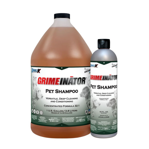 Grimeinator Shampoo is an exceptionally adaptable shampoo that delivers top-tier results on show-quality dogs while effectively cleansing even the most soiled and odor-heavy animals with gentle care. Its formula, enriched with humectants and emollients, nourishes the skin and conditions the coat, making it ideal for frequent use. It leaves fur soft, shiny, and easy to manage. Suitable for dogs, cats, puppies, kittens, as well as various companion and farm animals. Dilutes 32:1.