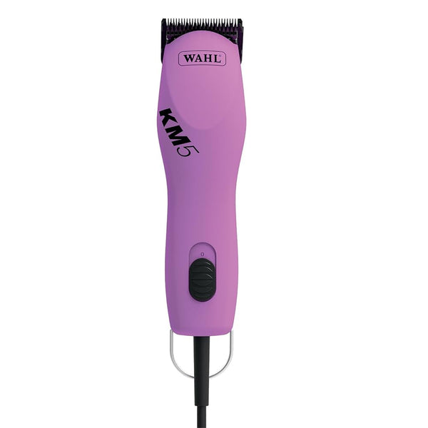 The Wahl KM5 Professional 2-Speed Clipper delivers advanced professional power, so it can handle full-body clips and withstand very high usage, and the efficiency of Constant Speed Control — built-in torque control that automatically delivers more power when clipping through mats and thick coats, making quick work of tough situations. Its lightweight design featuring low vibration, for superior control and all-day comfort, crafted to meet the need for comfort and power required by professional groomers. The ergonomic hand piece with a slip-resistant grip is designed for comfort and reduced fatigue. A no-maintenance rotary motor operates with constant speed control at 3,000 and 3,500, offering a smooth cutting ability that surpasses professional requirements. Includes a #10 blade, oil, and instructions.