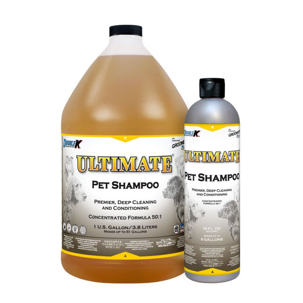 Ultimate shampoo is perfect for the widest range of coat types. Ultimate shampoo achieves “best in show” results on the finest animals with excellent luminizing and volumizing effects. This exceptional shampoo also deeply cleans very dirty and smelly animals and removes stains with gentle thoroughness. The emollient and humectant rich formula is great for everyday use. Conditions coat, softens skin and leaves coat luminous and manageable. Great for dogs, cats, puppies, kittens, horses, cattle and other companion animals. Dilutes 50:1.